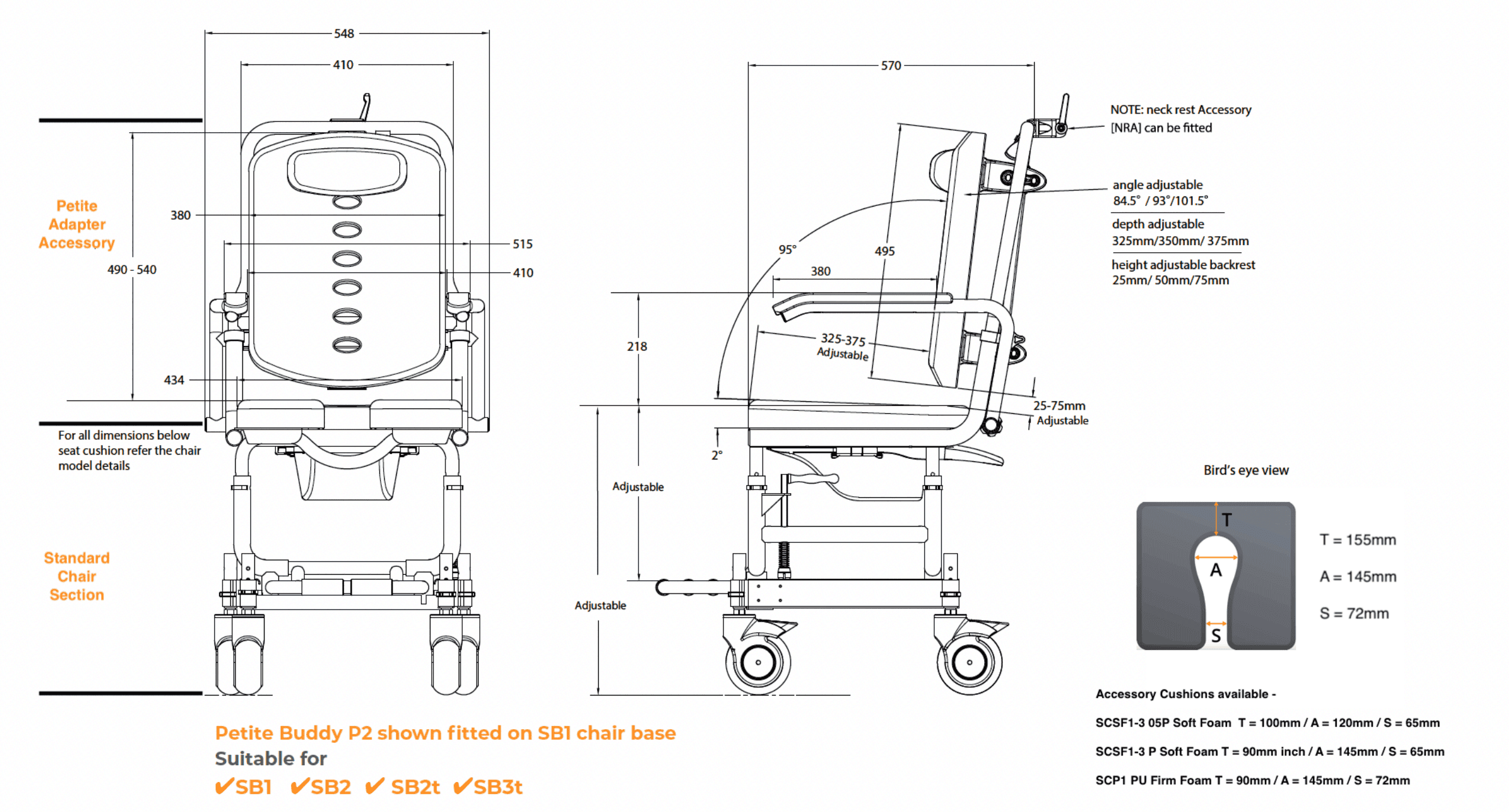 • Accessory-ready design (e.g., lateral/hip guides, head support, belts – model dependent)