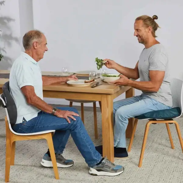 Donut-shaped design conforms to the body to promote correct posture and comfort