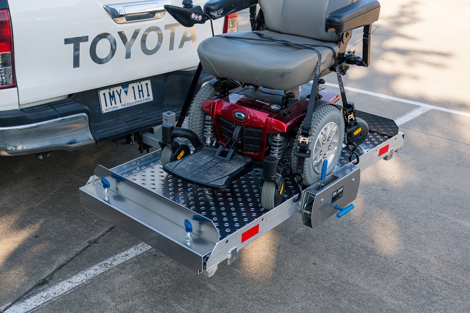 - Designed to transport most mobility scooters safely