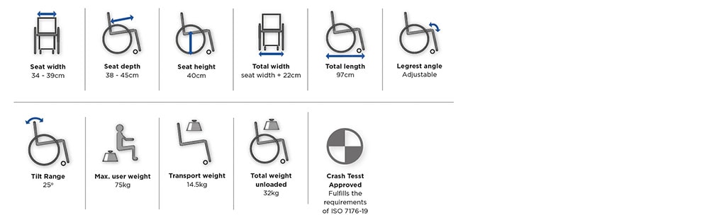 Wide accessory range: headrests, lateral supports, trays, positioning belts and more